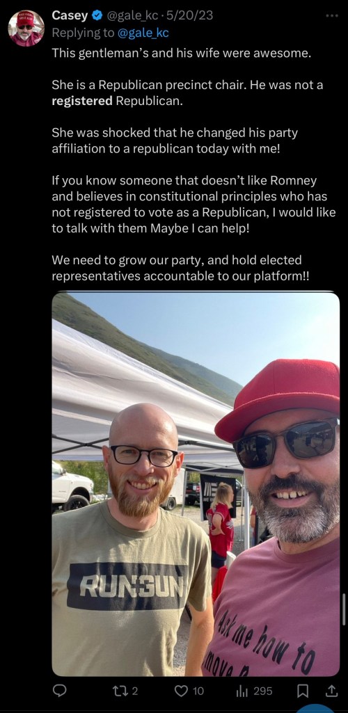 During this election cycle, he was appalled that the party failed to stand by its party constitution and its convention nominees, Phil Lyman, Trent Staggs, Kris Kimball, Tom Hansen. He’s embarrassed that elected republicans in legislative session over legislative session restrict GRAMA access where WE THE PEOPLE have a harder time trying to find out information about how the elected individuals and unelected bureaucrats are running OUR GOVERNMENT.